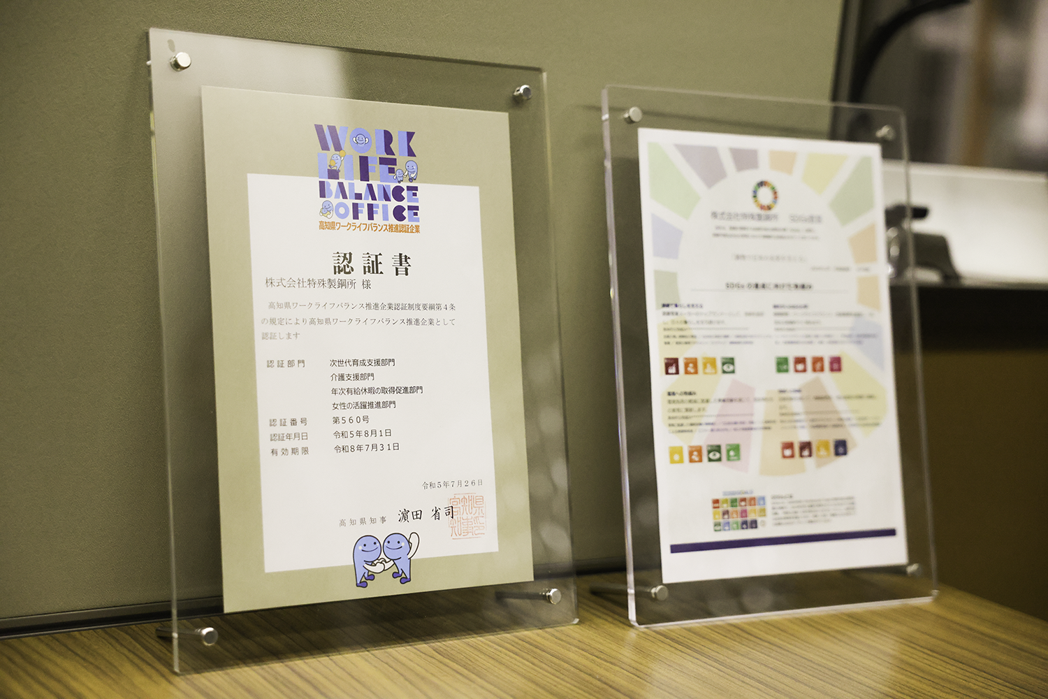 今回は、高知県ワークライフバランス推進企業認証で4部門を取得している株式会社 特殊製鋼所 猪野さまに、これまでの取組やこれからの展望についてお話を伺いました。